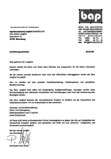 Im Jahr 2013 beschlossen beide dann die Gründung der Ingenieurplanung Langhof GmbH & Co. KG um nun diese Ingenieurleistungen der Technischen Gebäudeausrüstung und des Vorbeugenden Brandschutzes zu bündeln und unseren Kunden anzubieten.